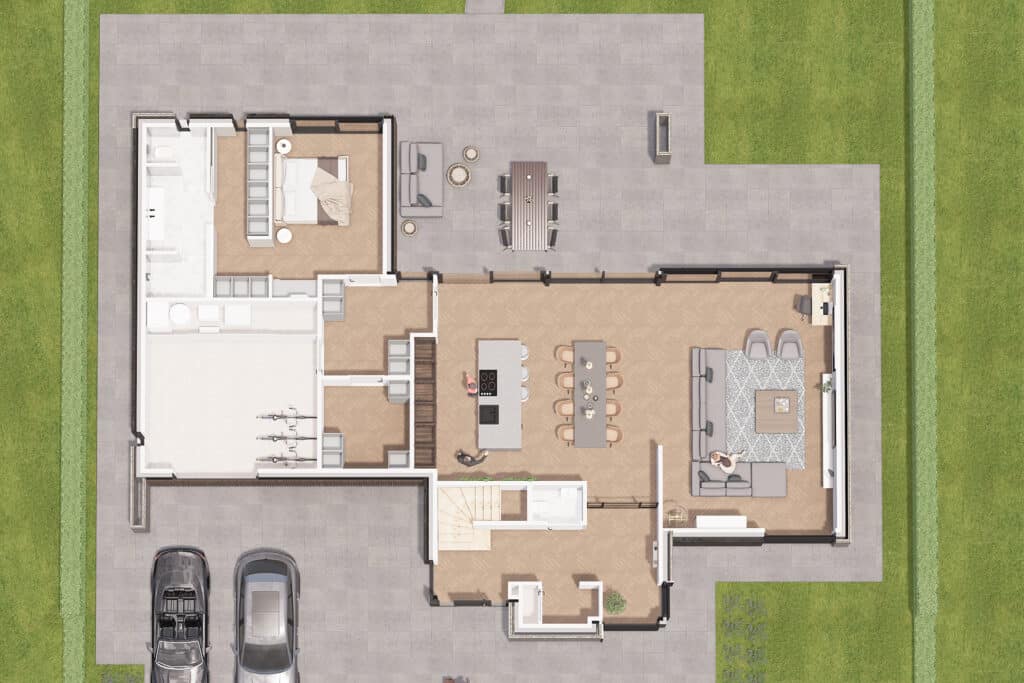 Deze vrijstaande woning is binnen het nieuwbouwplan Akkerlanen te Waalwijk gerealiseerd. Het betreft hier een levensloopbestendige woning met een volledig woonprogramma op de begane grond. Het eerste wat opvalt aan deze woning is zijn asymmetrische vormgeving. Daarnaast zorgt het schuine dak ervoor dat er optimaal gebruik gemaakt wordt van de zon. Het venster op de hoek is bewust geplaatst om zo een fraai zicht te hebben op het groen aan de voorzijde. Aan de andere zijde ligt een uitsparing waar zich de entree bevindt. De achterzijde ligt aan het water en hier is in het ontwerp rekening mee gehouden door de verblijfsruimte zoals de slaapkamer, zitkamer en de eetkeuken volledig te oriƫnteren op het water.