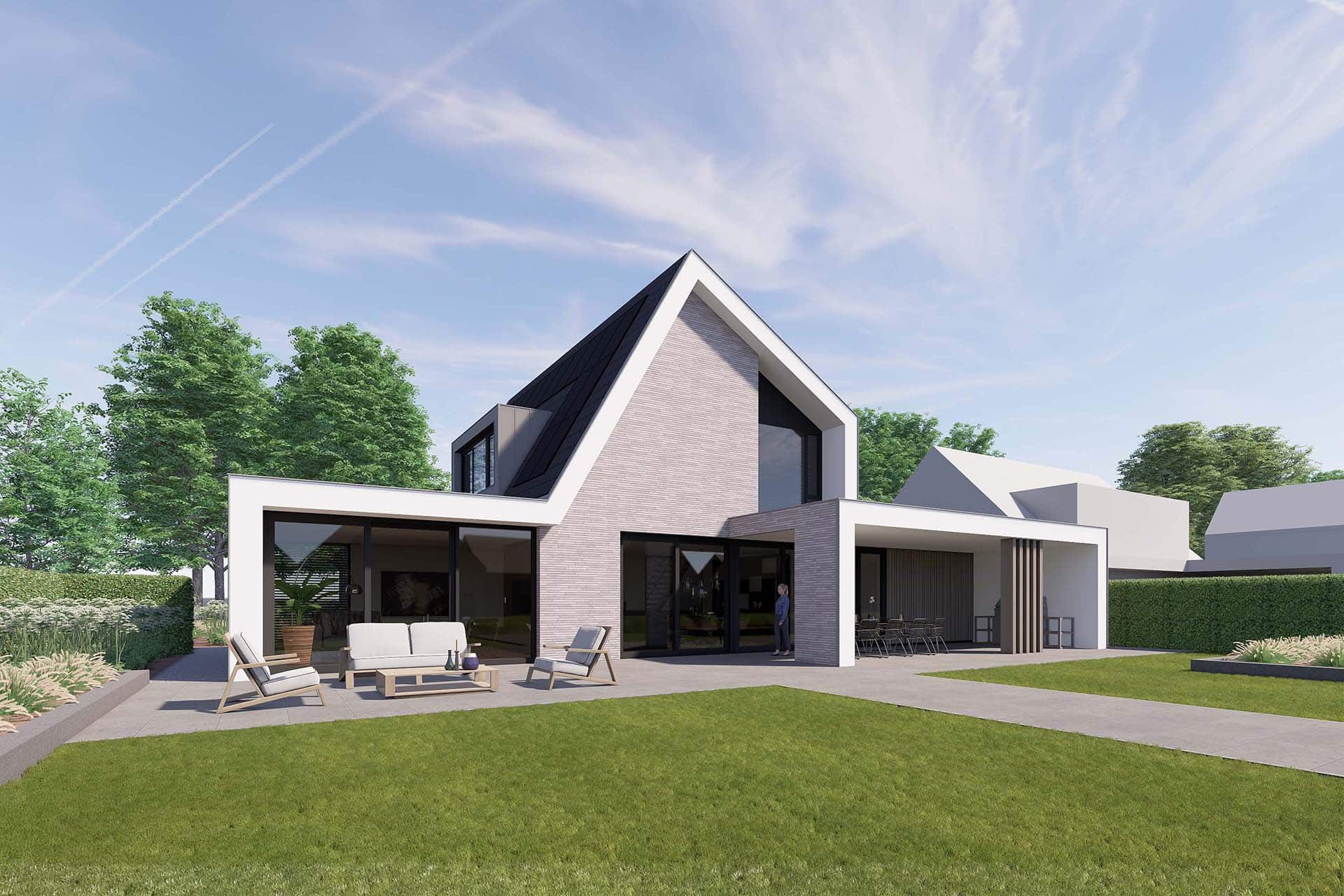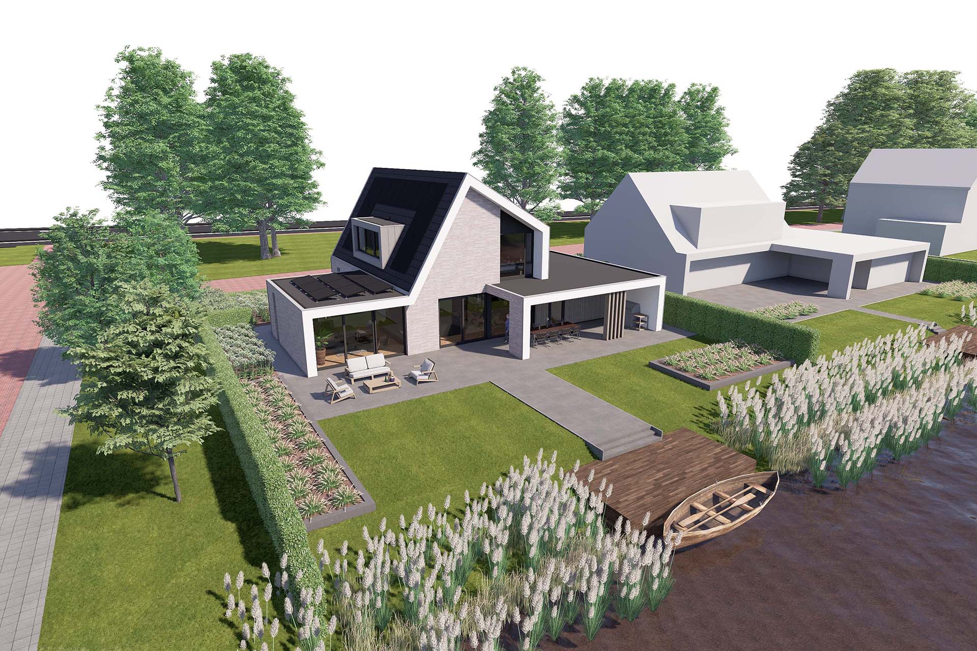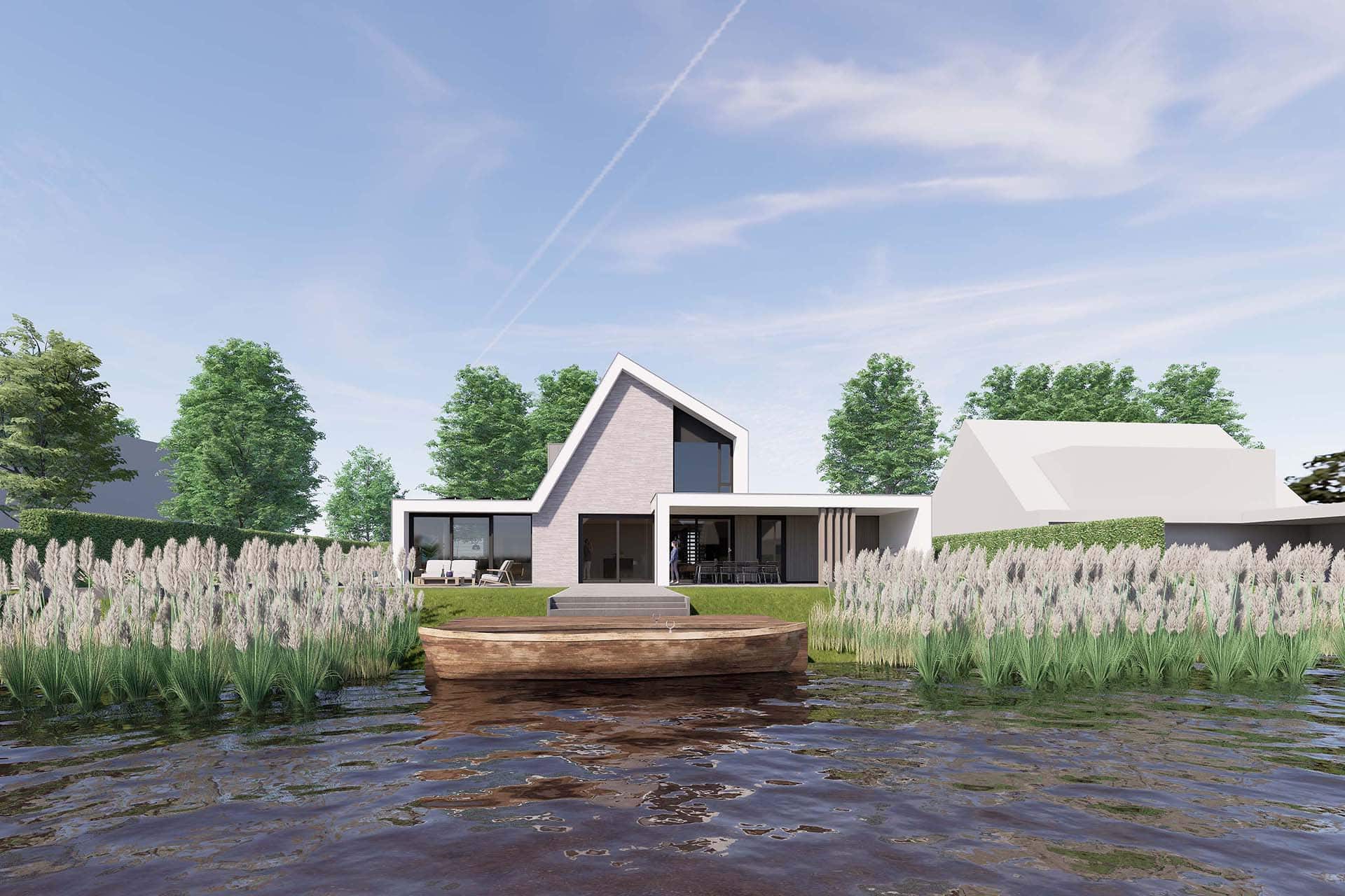 Deze wederom bijzondere woning wordt binnen het nieuwbouwplan Akkerlanen in Waalwijk gerealiseerd. De woning is gesitueerd op een hoekkavel en hierdoor aan zowel voor, zij en achtergevel goed zichtbaar. De woning kenmerkt zich door zijn asymmetrische vormgeving. De doorlopende boeidelen en overstekken vormen een dynamisch geheel en geven de woning een eigen karakteristiek. Het nieuwbouwplan Akkerlanen wordt gebouwd met veel ruimte voor water en groen. Zo ligt ook deze woning met de achterzijde aan het water. Hier is rekening mee gehouden in het ontwerp. De verblijfsruimten zoals de eetkeuken en zitkamer zijn dan ook volledig georiƫnteerd op het water.