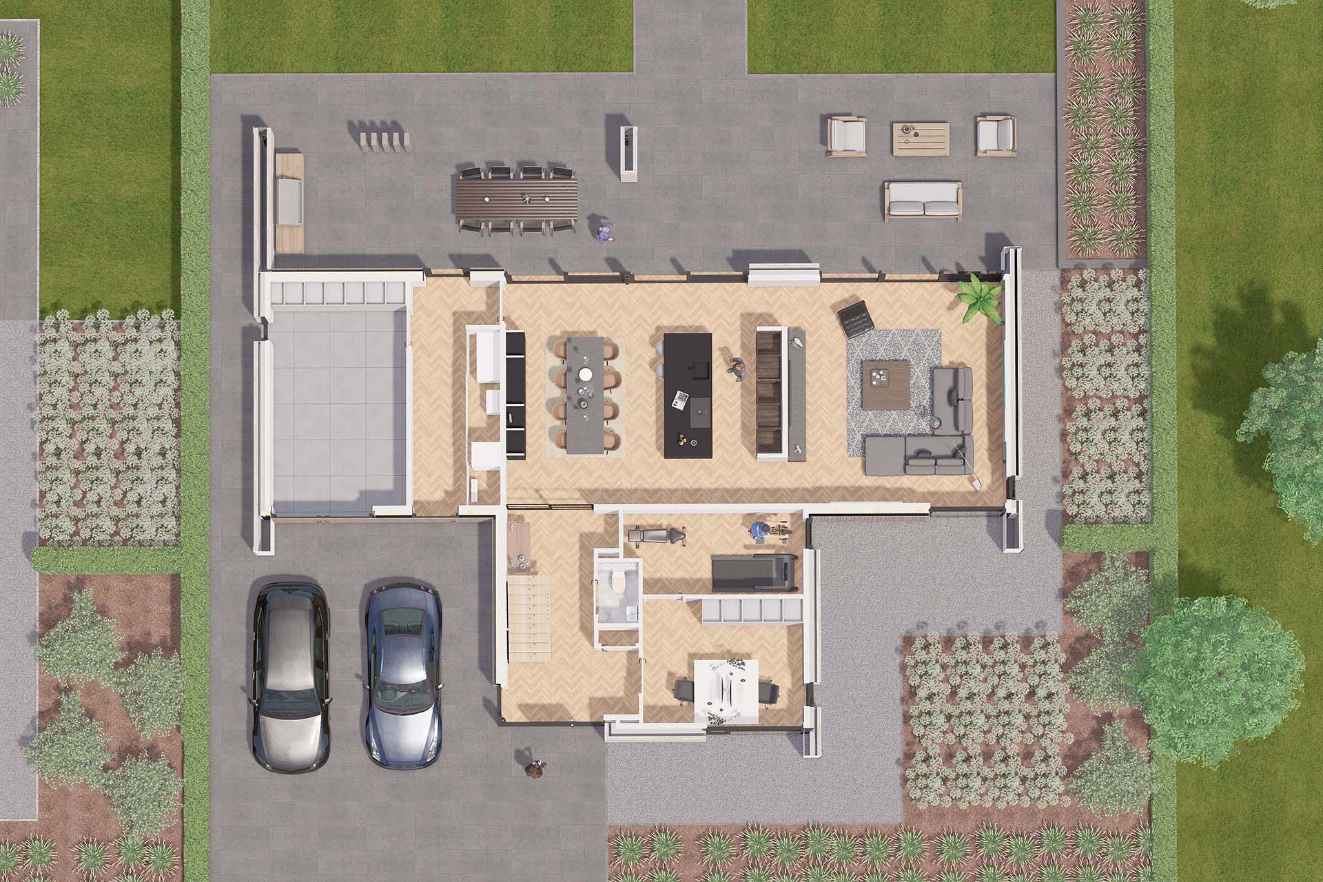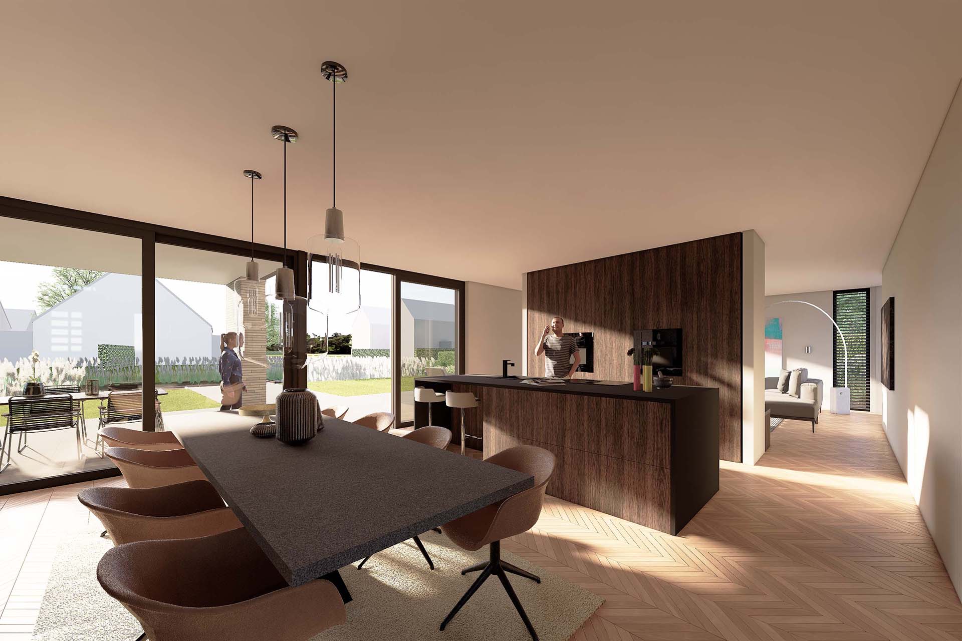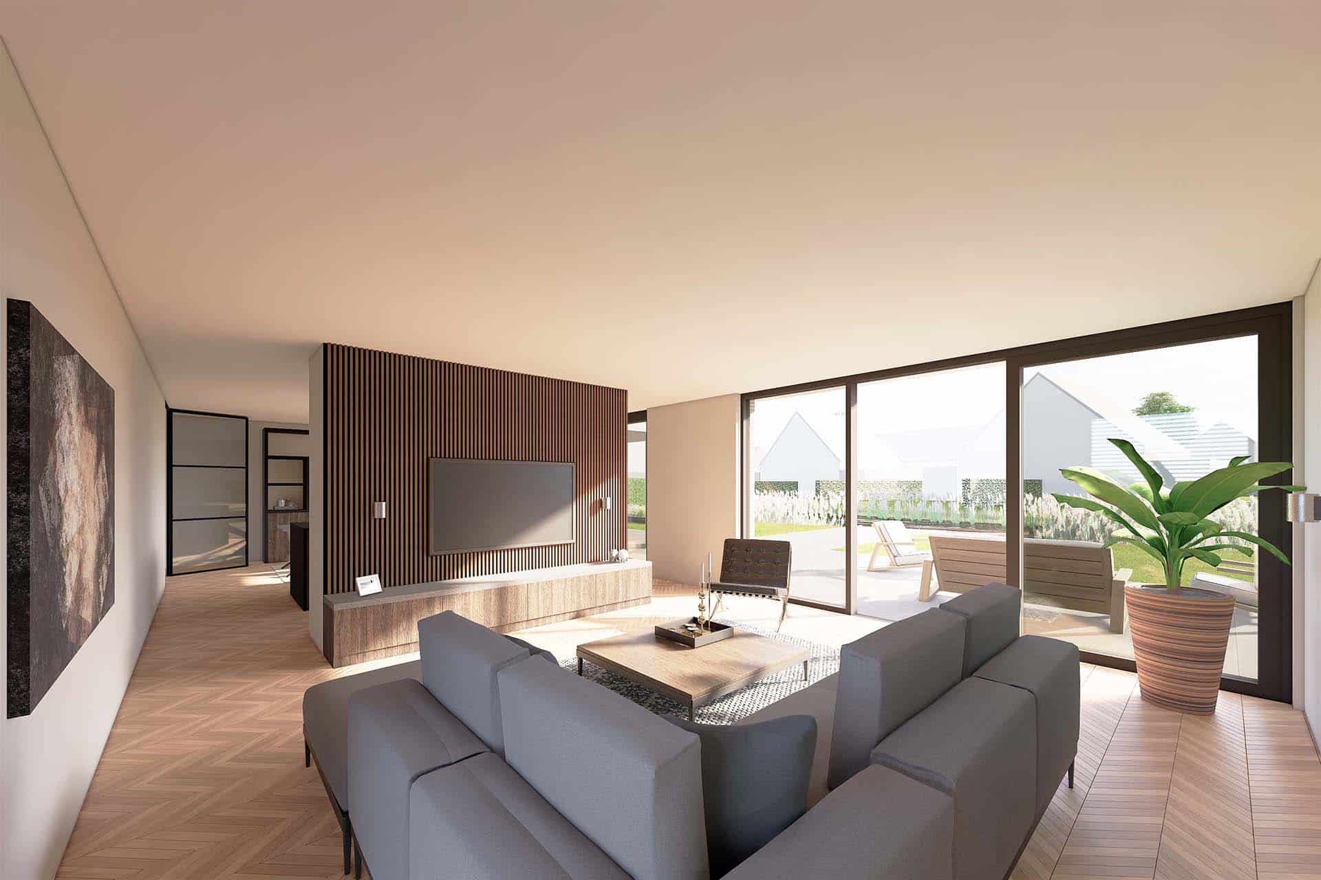 Deze wederom bijzondere woning wordt binnen het nieuwbouwplan Akkerlanen in Waalwijk gerealiseerd. De woning is gesitueerd op een hoekkavel en hierdoor aan zowel voor, zij en achtergevel goed zichtbaar. De woning kenmerkt zich door zijn asymmetrische vormgeving. De doorlopende boeidelen en overstekken vormen een dynamisch geheel en geven de woning een eigen karakteristiek. Het nieuwbouwplan Akkerlanen wordt gebouwd met veel ruimte voor water en groen. Zo ligt ook deze woning met de achterzijde aan het water. Hier is rekening mee gehouden in het ontwerp. De verblijfsruimten zoals de eetkeuken en zitkamer zijn dan ook volledig georiƫnteerd op het water.