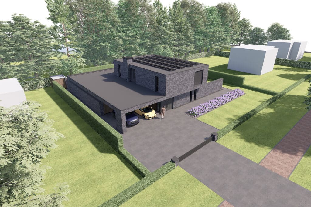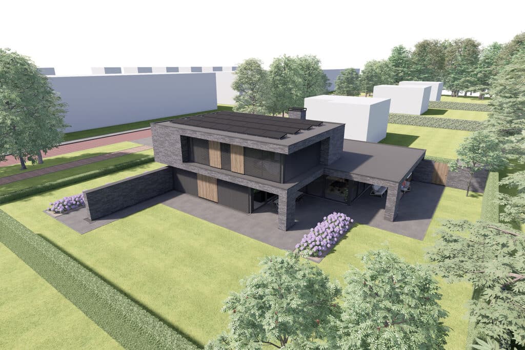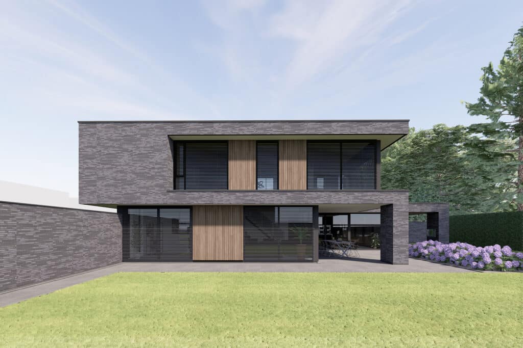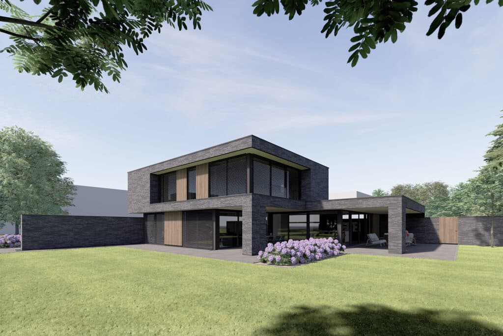Deze villa wordt binnen het nieuwbouwplan Akkerlanen te Waalwijk gerealiseerd. Conform het beeldkwaliteitsplan is metselwerk de drager. In het ontwerp is gekozen voor een extra lange, donkere slanke en stijlvolle gevelsteen. Het hoofgebouw en de bijgebouwen zijn door metselwerk met elkaar verbonden. Hierdoor ontstaat er een dynamisch maar ook een harmonieus geheel. De voorzijde die naar de straat is gericht, is in verband met privacy wat meer gesloten gehouden. Dit wordt nog eens versterkt door de doorlopende tuinmuur die die brede zijtuin afschermt. Daarentegen hebben de zij -en achtergevel grote raampartijen zodat er optimaal zicht is over het groen en water. De twee ruime overdekte terrassen zijn optimaal op te tuin georiënteerd en geven plaats aan zowel een eet als loungehoek.