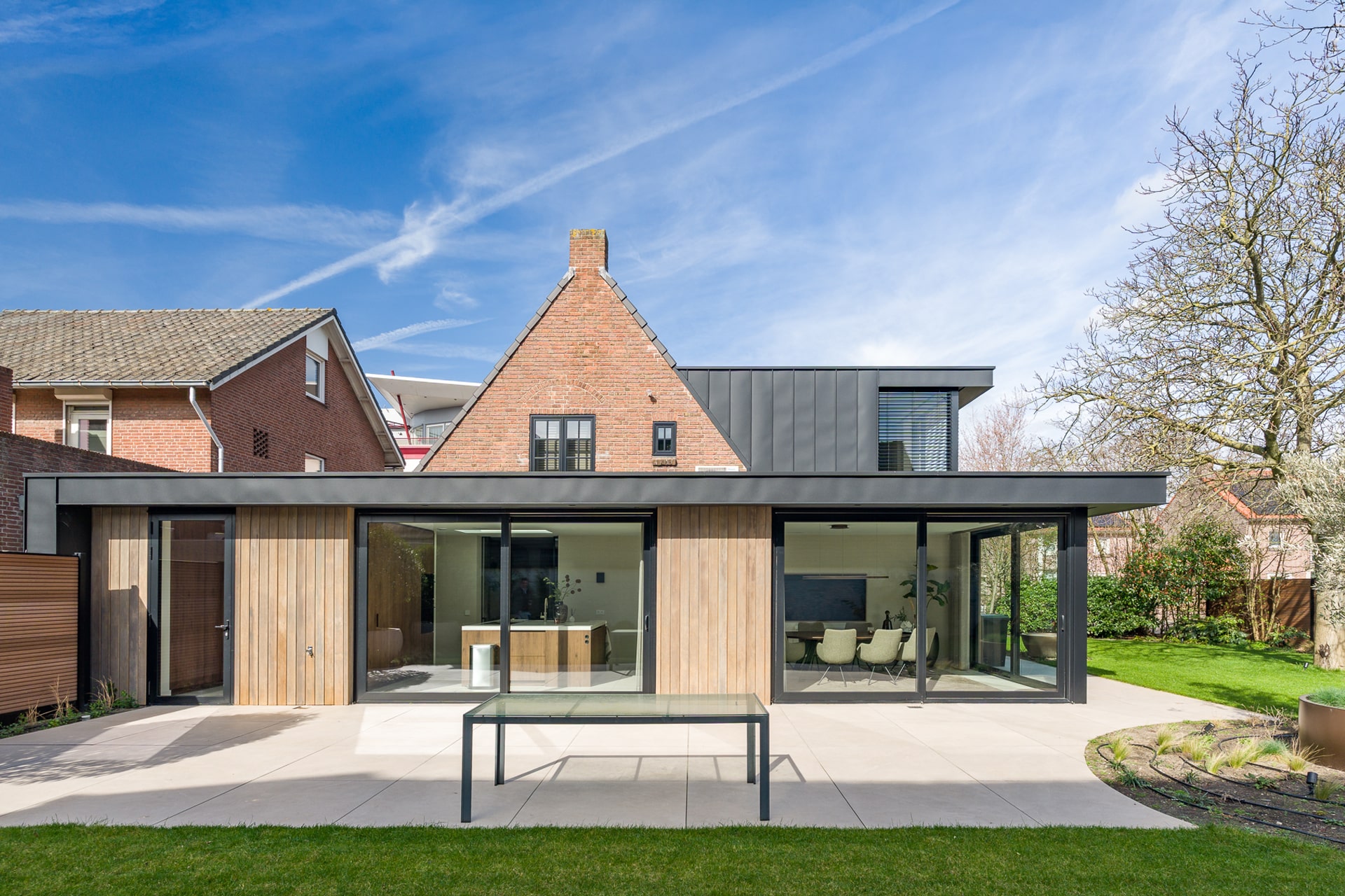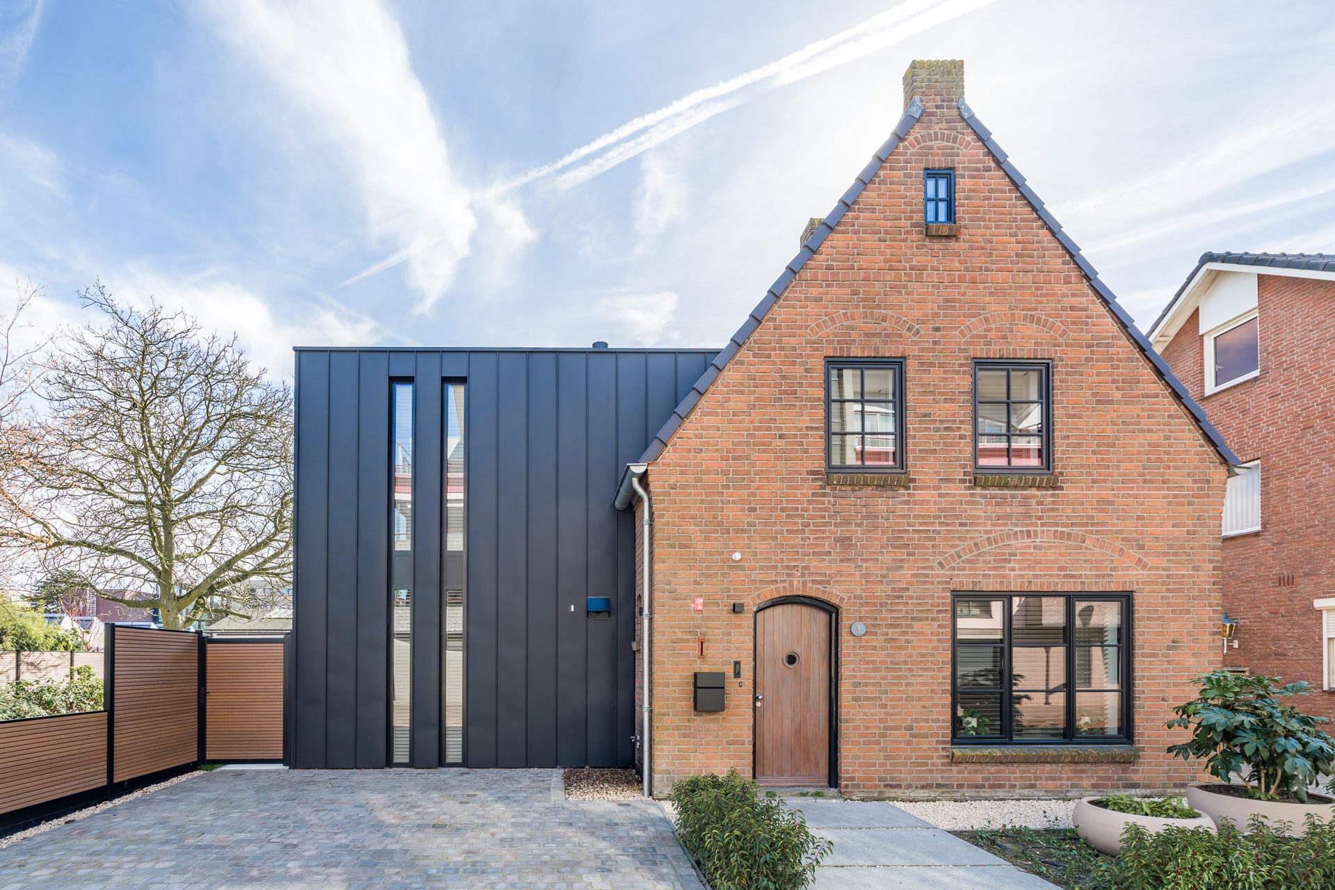 Deze bestaande woning uit oorspronkelijk 1940 vlak bij het centrum in Waalwijk is compleet getransformeerd en uitgebreid. Hierdoor voldoet de woning weer aan de eisen van de huidige tijd. Er is bewust gekozen voor een uitbreiding door middel van een zwart metalen aanbouw, zodat de oorspronkelijke karakteristieke woning herkenbaar blijft.