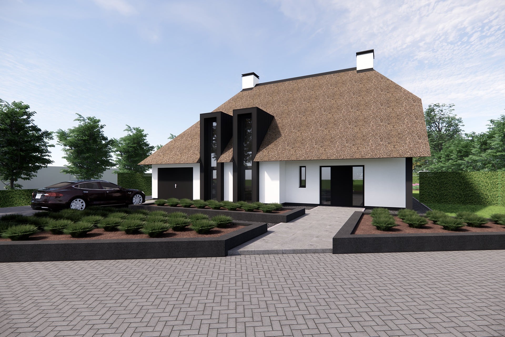 De oorspronkelijk villa uit de Jaren 80 wordt compleet getransformeerd naar een moderne, eigentijdse villa. De locatie is uniek. De villa ligt op een ruim perceel aan de rand van Drunen. De villa krijgt een nieuw dak, wordt aan de buitenzijde geïsoleerd met gevelstukwerk. Tevens wordt aan de achterzijde de eetkeuken uitgebouwd en de ruimtes heringedeeld. De zwarte erkers en nieuwe dakkapellen maken het beeld compleet.