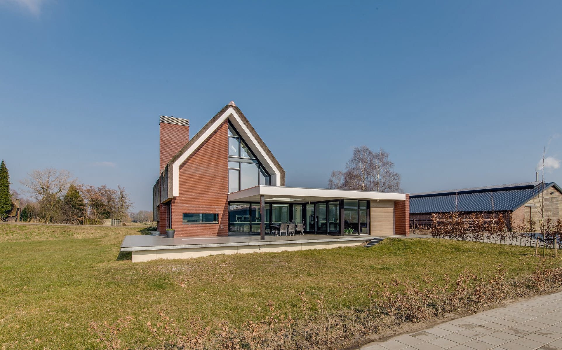Deze modern vormgegeven boerderij gaat fraai op in de omgeving