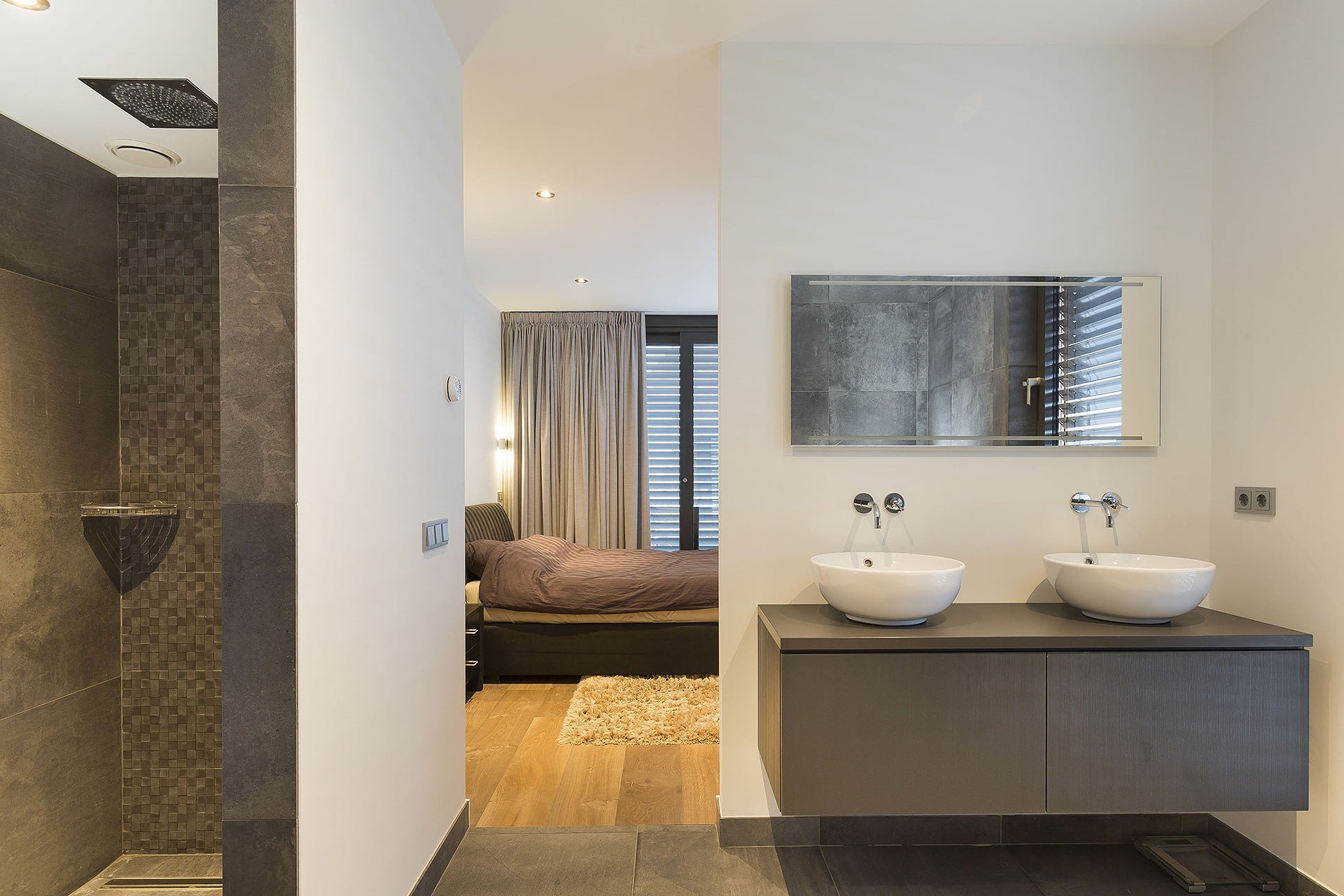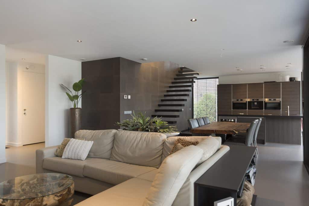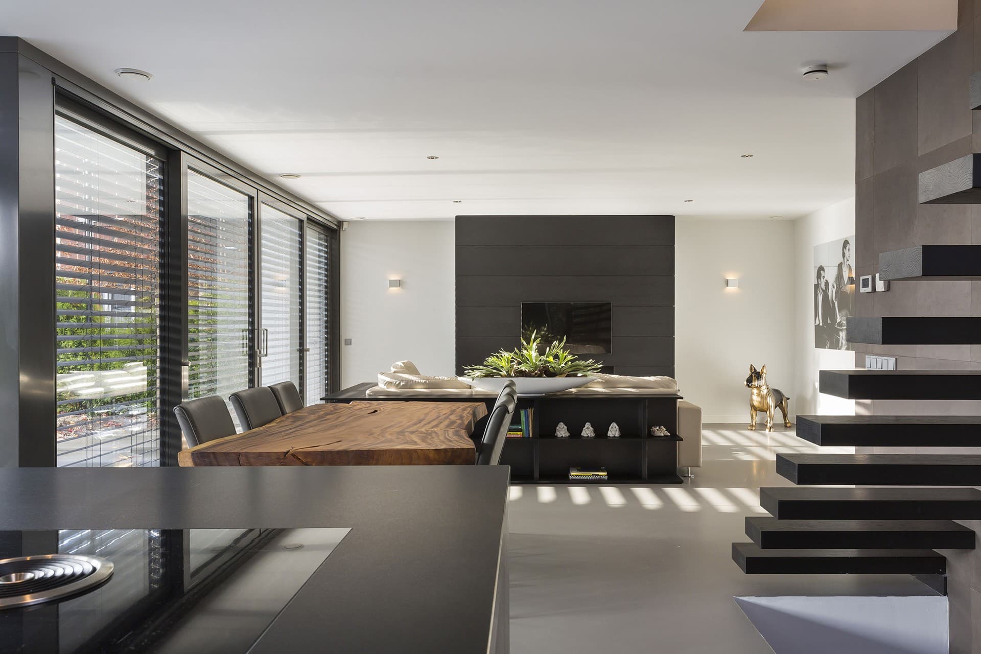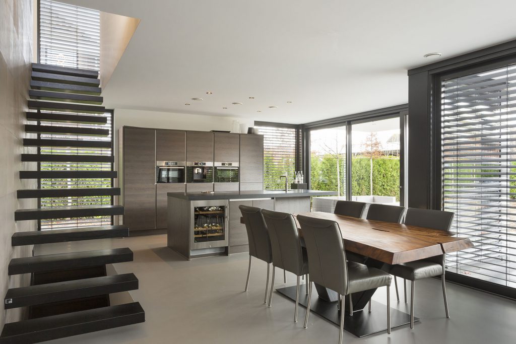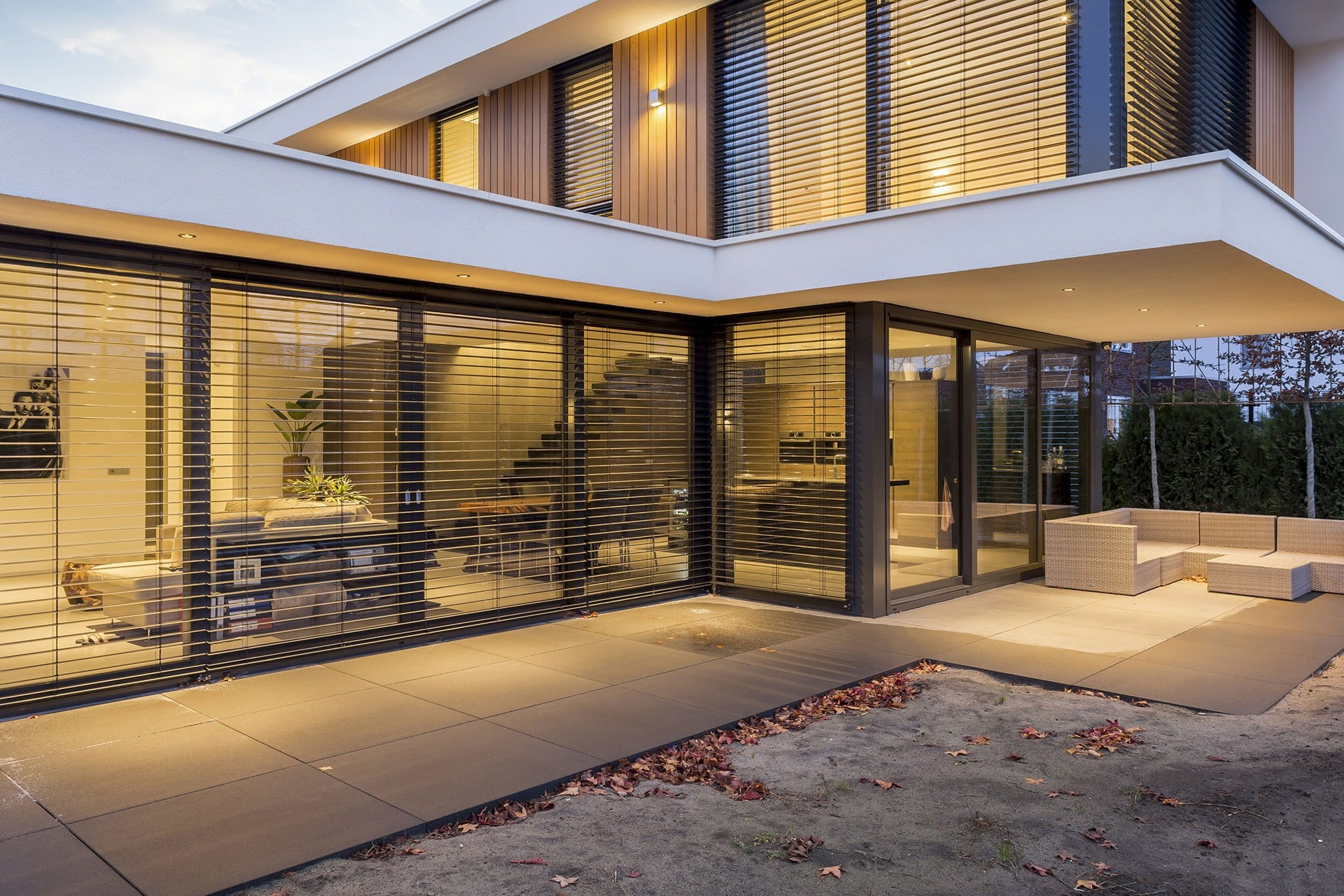 Doormiddel van grote glasvlakken, overstekken en buitenjaloezieƫn wordt maximaal gebruik gemaakt van de zon