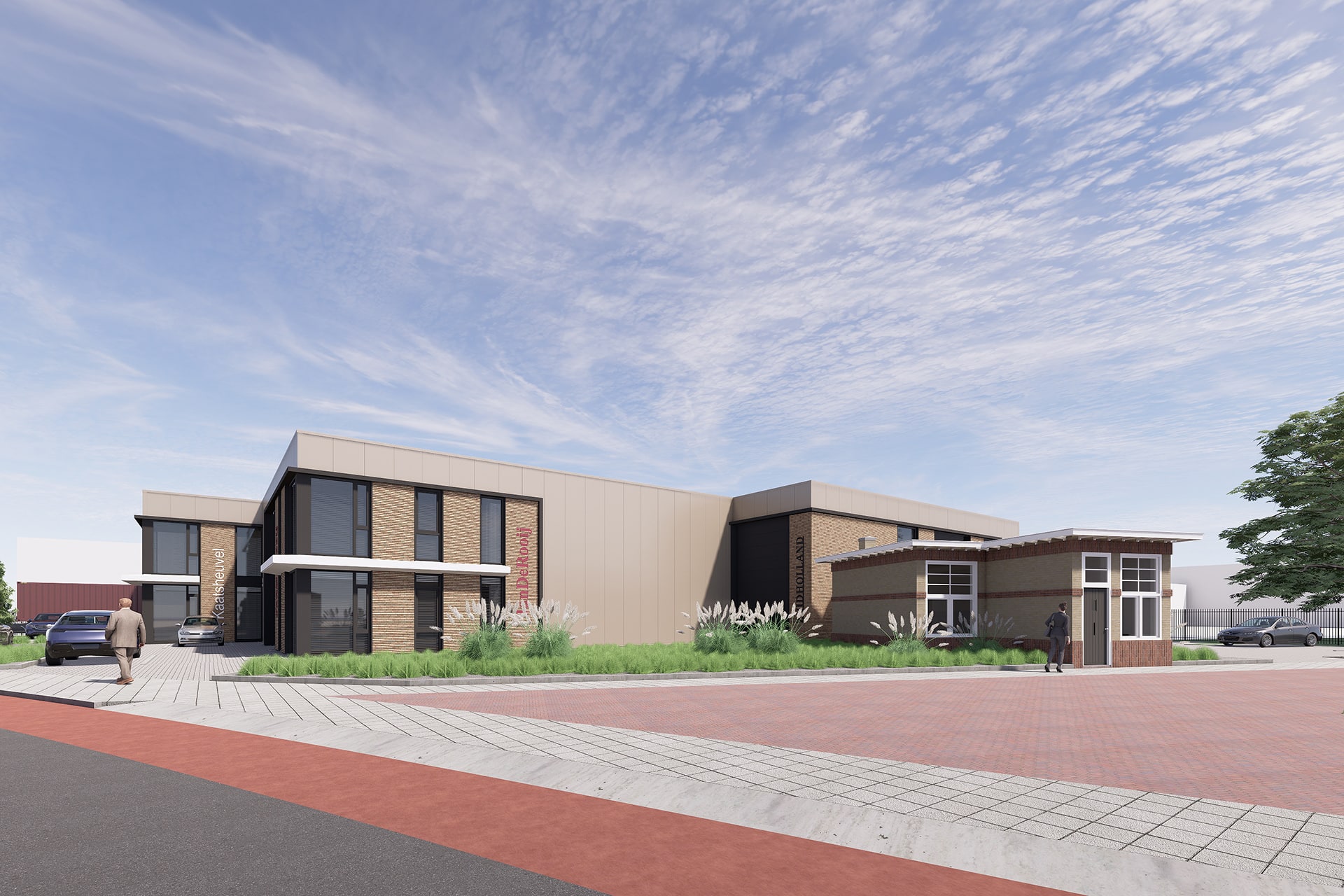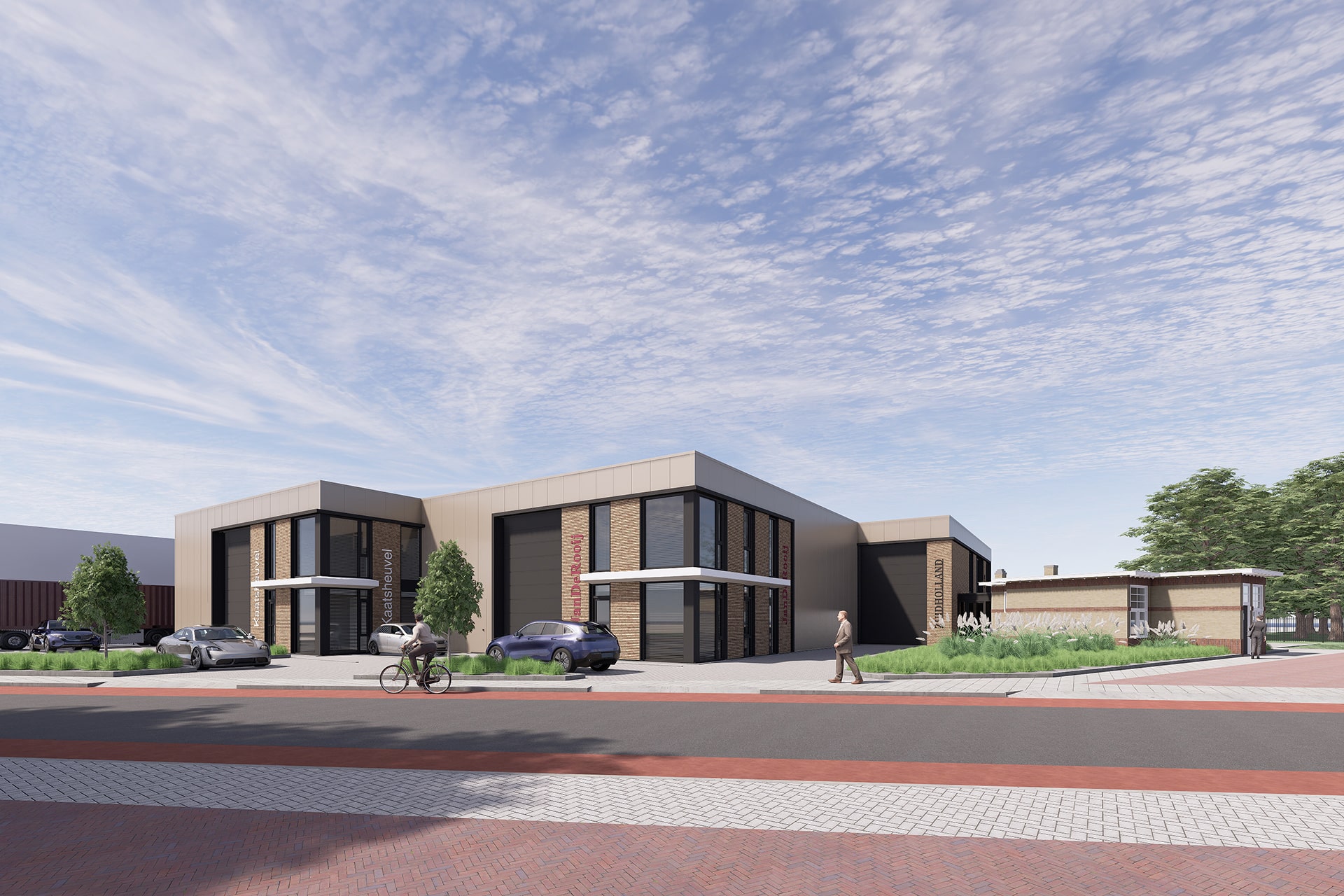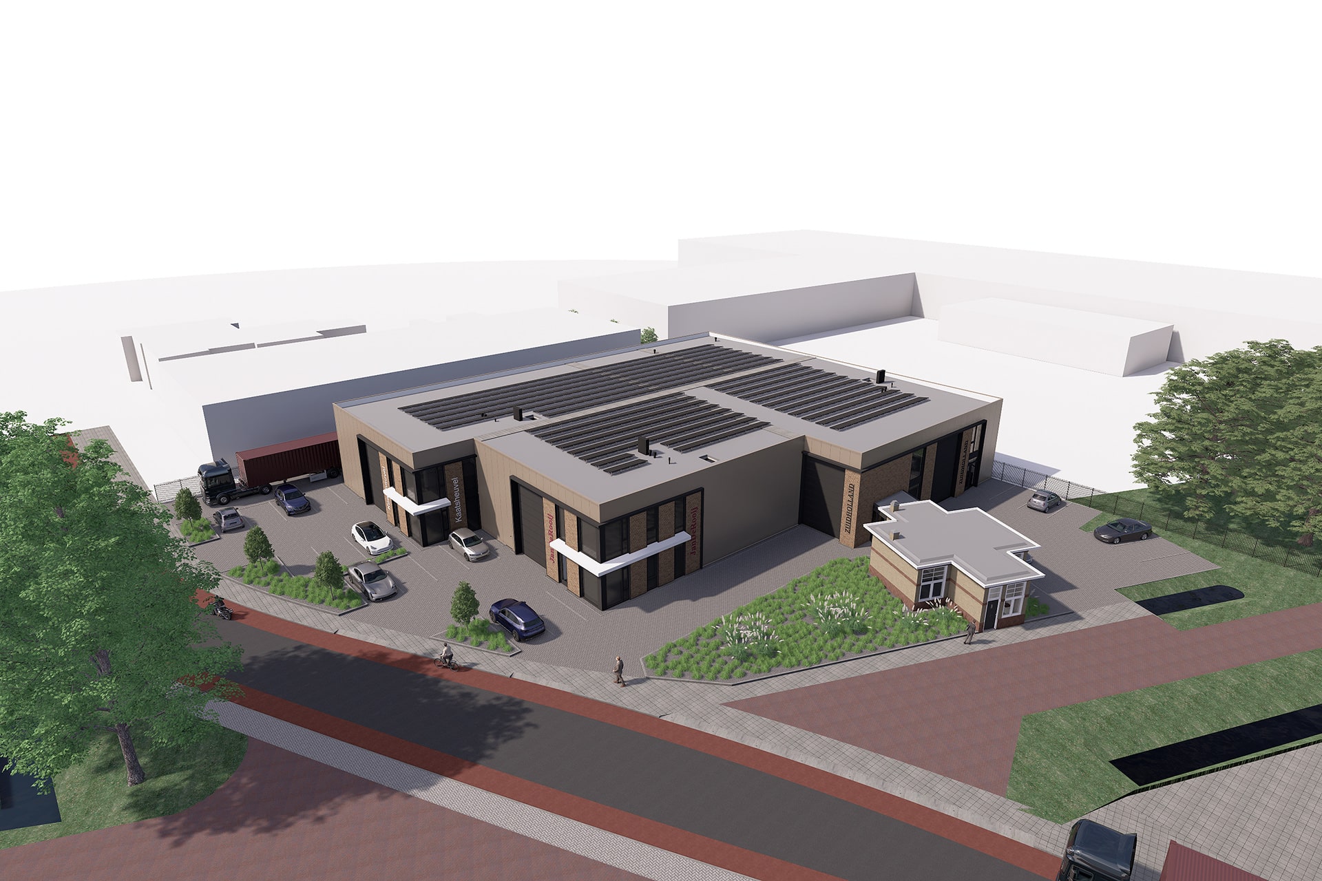 Wij hebben in opdracht van Hoefnagel Totaalbouw een plan gemaakt voor een Business Centrum aan de Jan de Rooijstraat in Kaatsheuvel. Hier komen straks representatieve bedrijfsunits van ca. 150 m2 tot 400 m2. In het ontwerp is sterk rekening gehouden met het voormalige slachthuis welke is opgenomen in het rijksmonumentregister. Zo is onder andere aandacht besteed aan de vormgeving en de detaillering van het nieuwe bedrijfspand om deze zo veel mogelijk aan te sluiten op het monumentale slachthuis. Door de bijzonder ligging op een hoekkavel zijn de verschillende bedrijfspanden versprongen gesitueerd zodat deze elk een individuele uitstraling hebben.