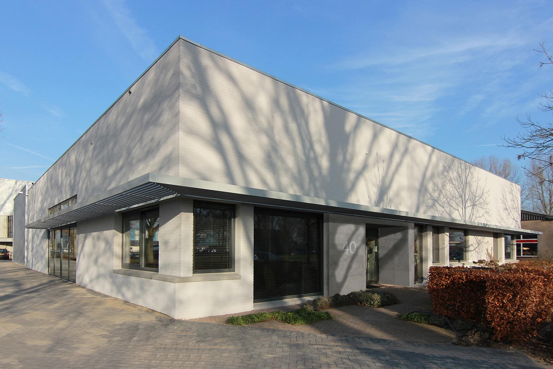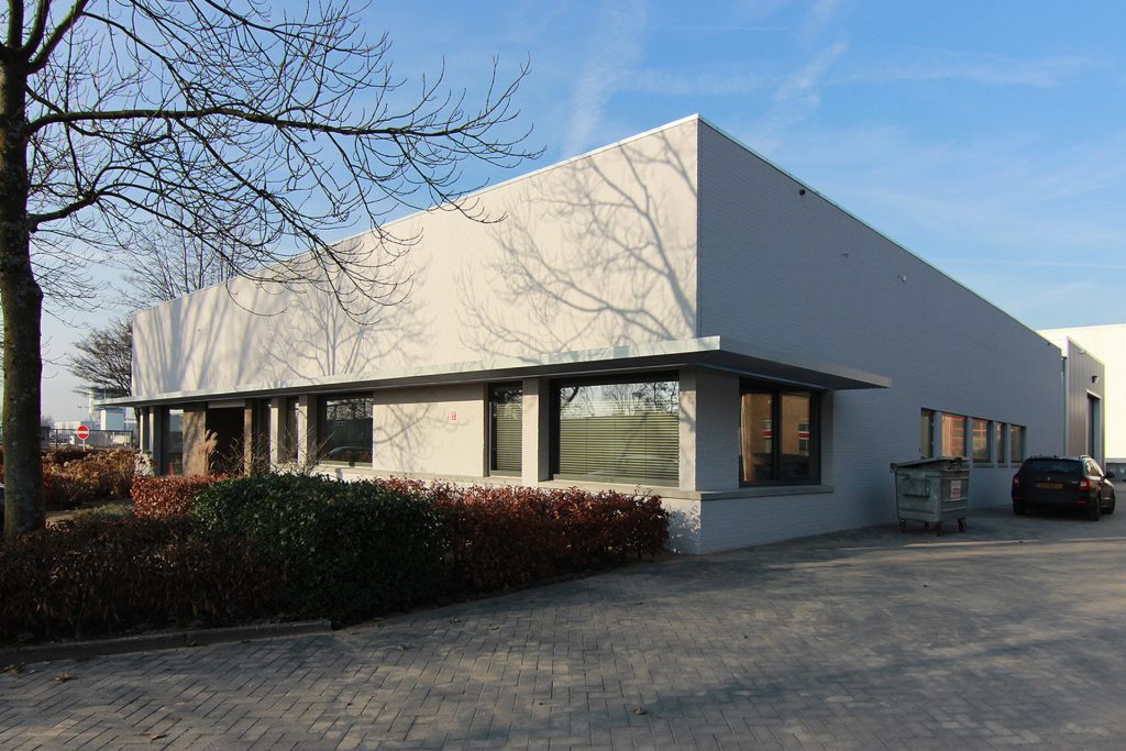 MAASLEDER is gelegen op het industrieterrein Haven in Waalwijk. Het pand is op de hoek gelegen en de opdrachtgever wenste naast een uitbreiding van zijn bedrijfshal een complete metamorfose. Het huidige pand oogt anoniem en wat gedateerd. Het bestaande pand heeft een mooie massieve opbouw en sterke geleding van metselwerk penanten, deze komen in de huidige situatie echter niet tot zijn recht. Het pand wordt volledig gekeimd in een grijze kleur. De entree heeft een afwijkende materialisering en kleur en wordt daarmee duidelijk geaccentueerd. Het bestaande pand bevat een duidelijk horizontale lijn die extra is aangezet door een aluminium luifel. Deze vervangt de bestaande screens. In de westgevel is de bestaande roldeur overbodig geworden en is deze vervangen door een glazen pui die daglicht biedt aan de achtergelegen werkplekken. Er wordt immers met leer gewerkt en daarbij is daglicht zeer wenselijk. Tevens zorgt het voor een interactie tussen voorbijgangers en het personeel.De uitbreiding aan de achterzijde is uitgevoerd als ingetogen aluminium grijze massa die weer in overeenstemming is met de aluminium luifel. Hierdoor ontstaat er een eigentijds geheel.