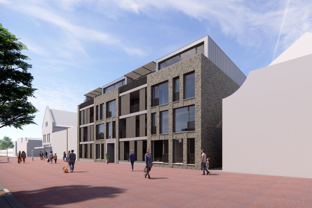 Overeenkomstig de koers van de gemeente Waalwijk waar steeds meer aandacht is voor meer wonen i.p.v winkelen zal er straks aan de Stationsstraat in het centrum van Waalwijk een nieuw complex met appartementen verrijzen genaamd “Karakter”. Een karakteristiek gebouw met vier bouwlagen en 15 royaal gedimensioneerde koopappartementen. Het gebouw heeft een hele bijzondere ligging, namelijk aan de voorzijde de levendigheid van de winkelstraat en de achterzijde grenzend aan de groene diepe tuinen van de Julianastraat. De appartementen zijn dan ook rug aan rug geschakeld met centraal in het gebouw gelegen; de lift, het trappenhuis en het ruim vormgegeven atrium waar bewoners elkaar kunnen ontmoeten voor een ongedwongen praatje. Ook dringt hier het daglicht diep het gebouw binnen en hebben alle appartementen subtiel licht en zicht op deze binnenruimte.