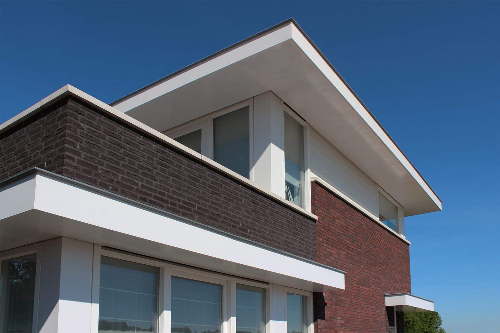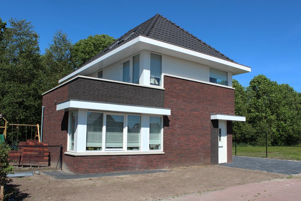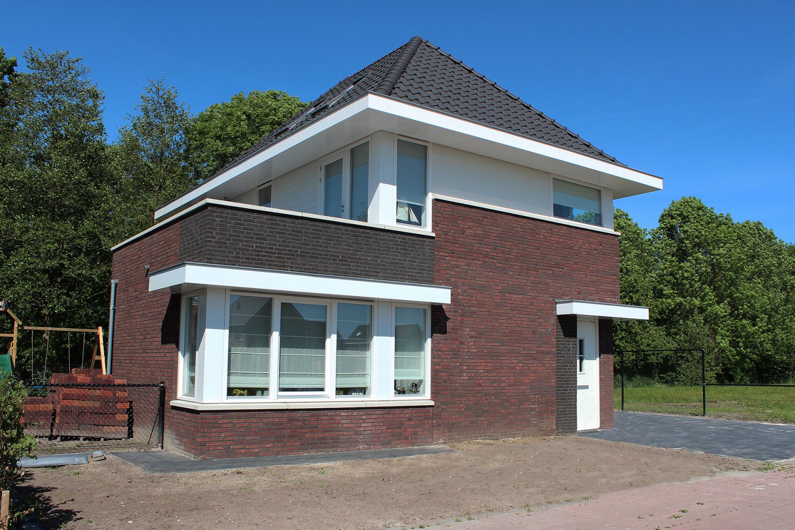 In architectuur kenmerkt de woning zich door een beweging van verschillende metselwerkvlakken die de verdiepingen in één gebaar omsluiten. Het metselwerk wordt op de hoeken forser aangezet zodat de entree en de woonkeuken extra worden geaccentueerd. Dit wordt versterkt door de luifels die tevens dienen voor de zonwering. De karakteristieke schildkap vormt de beëindiging van de woning, maar wordt los gehouden van de metselwerk onderbouw door een accentuerend vlak van kozijnen en horizontale delen.