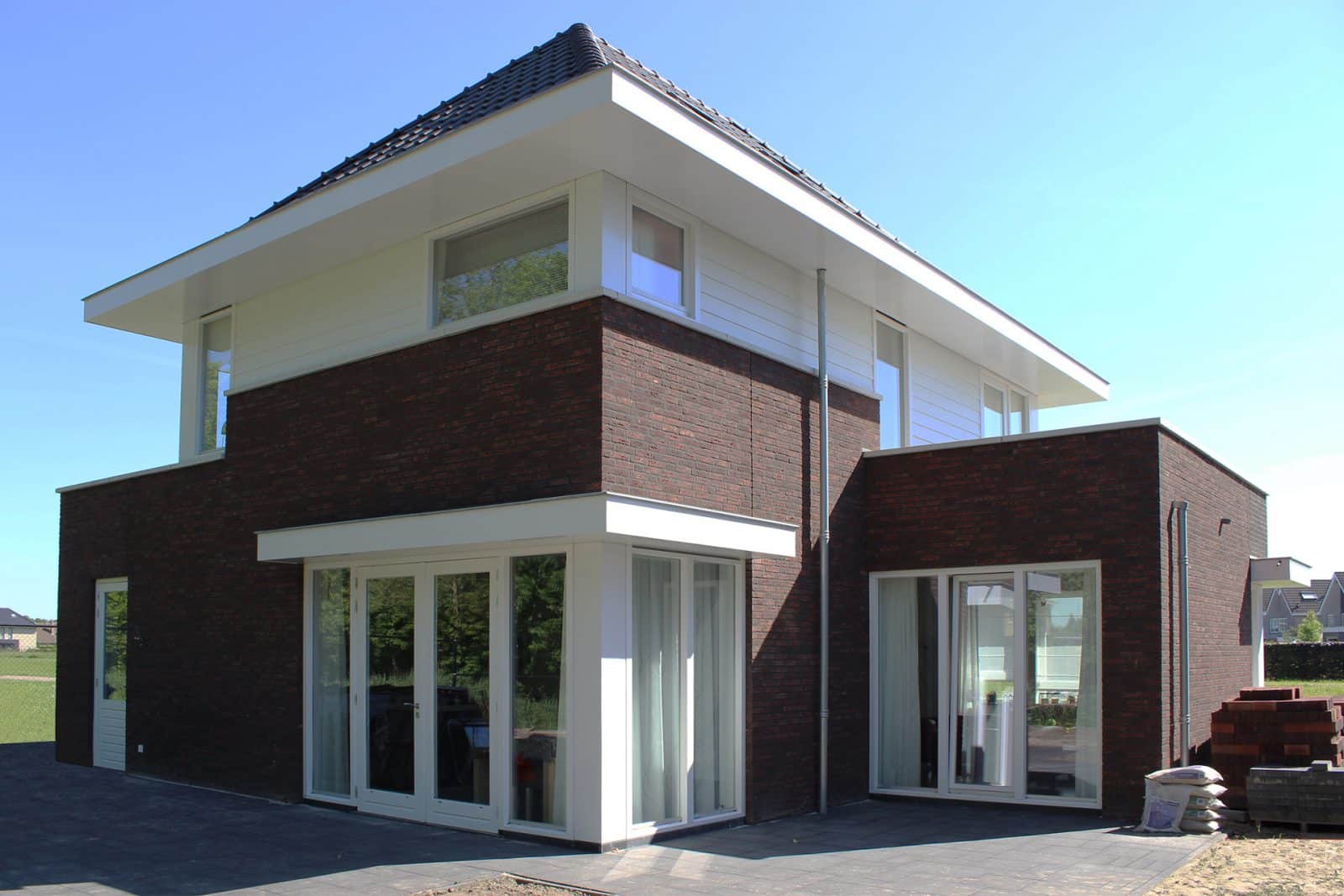 In architectuur kenmerkt de woning zich door een beweging van verschillende metselwerkvlakken die de verdiepingen in één gebaar omsluiten. Het metselwerk wordt op de hoeken forser aangezet zodat de entree en de woonkeuken extra worden geaccentueerd. Dit wordt versterkt door de luifels die tevens dienen voor de zonwering. De karakteristieke schildkap vormt de beëindiging van de woning, maar wordt los gehouden van de metselwerk onderbouw door een accentuerend vlak van kozijnen en horizontale delen.
